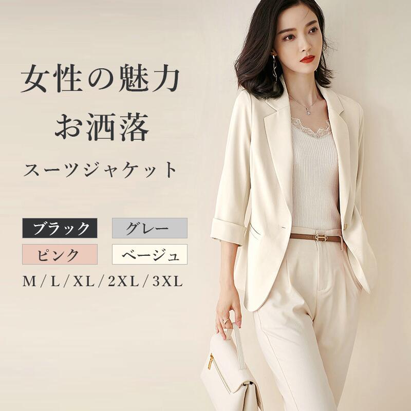 【2枚購入で1oo円OFF】テーラードジャケット レディース 七分袖 フォーマル スーツ カジュアル トップス オフィス 通勤 OL ビジネス 薄手 はおり 上着 おしゃれ 無地 冷房対策 アウター