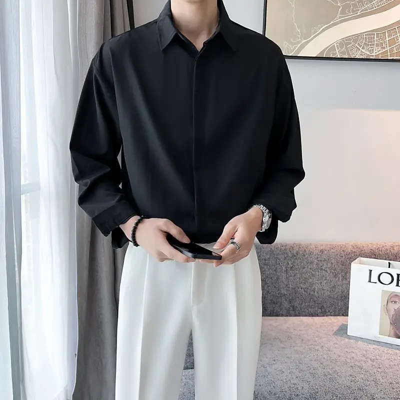 2024新品入荷送料無料メンズ長袖シャツ,オフィスウェア,カジュアル,無地,折り返し襟,上質,夏