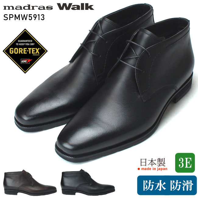 マドラス ウォーク SPMW5913 ビジネスシューズ メンズ madras Walk ゴアテックス 3E 防水 防滑 外羽根 スクエアトゥ 日本製 チャッカーブーツ 黒 茶 (1809)