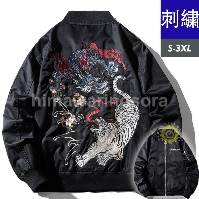 スカジャン メンズ 刺繍 ジャケット 和柄 龍虎 竜 アウター フライトジャケット ブルゾン サテン生地 スタジャン ゆったり ロック系 春秋 お兄系