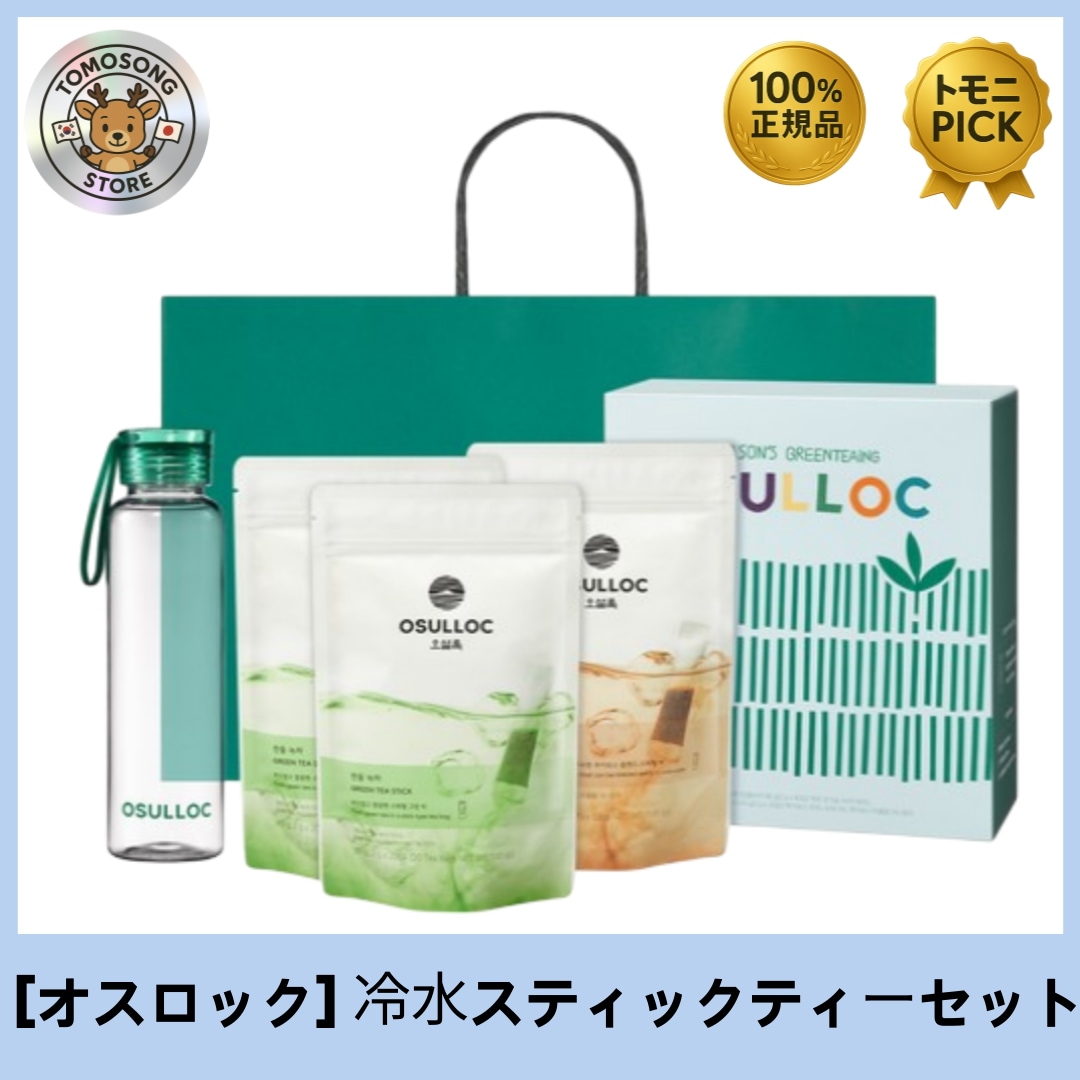 オソルロク 冷水スティックティーセット(緑茶2袋 + ルイボス1袋 + ストラップボトル付き) 冷水で簡単抽出!暑い夏でもスッキリ楽しめる韓国・済州の名茶ブランド の水出しティーセ