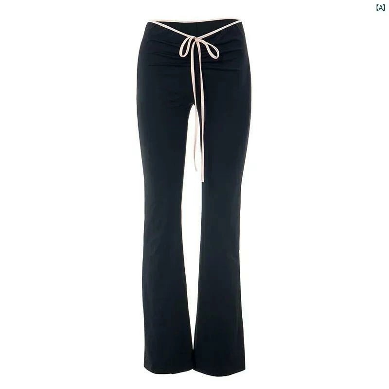 専門ショップレディースファッション かわいい オシャレ 海外 ローライズ スリムフィット マイクロ フレア パンツ カジュアル レースアップ スリム フィット
