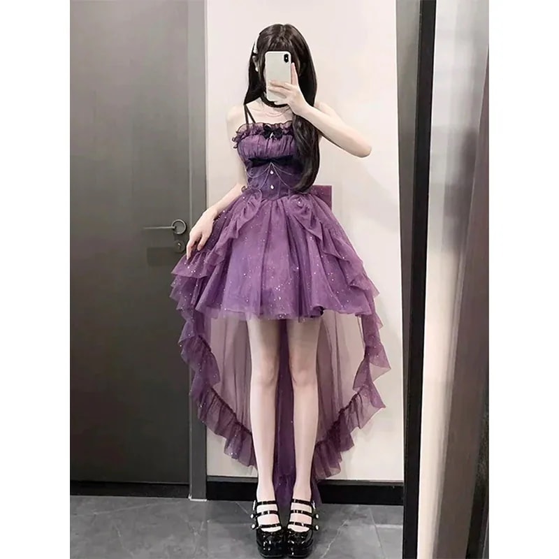 世界中で大人気の微ラメロリータ テールスカート パープルライトドレス プリンセスドレス ロリータ