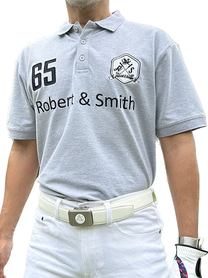 ロバートアンドスミス 100% コットン 定番 ゴルフ ポロシャツ ゴルフウエア 半袖メンズ( グレー, L)