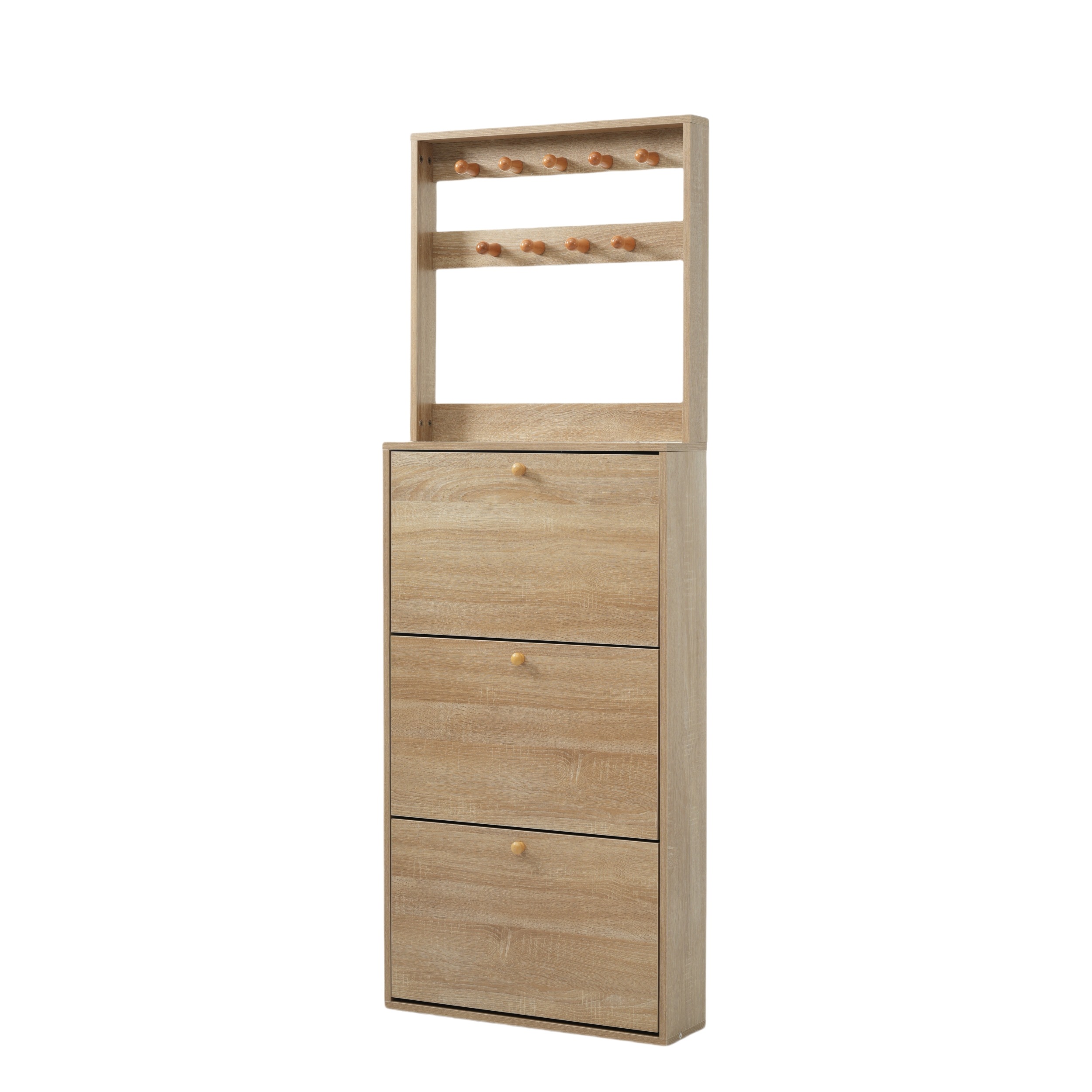 SALE価格で大放出【新品】ヴィンテージナチュラル シューズラック スリム 靴箱 下駄箱 薄型 3段 フック付き くつ箱 靴入れ 収納ラック エントランス 靴収納 靴収納棚 木製 おしゃれ 消臭GG8945 NaturG