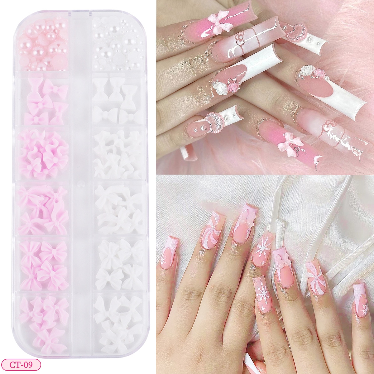 【安心発送】【1点ご購入 で10点プレゼントいたします】12マスボックスネイルリボンリボンリボンバレエ風合金蝶アクセサリーdiyアクセサリー